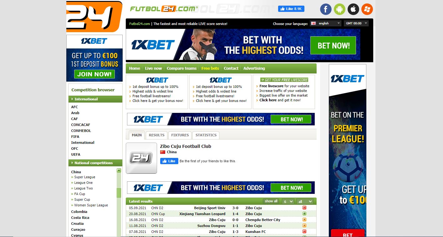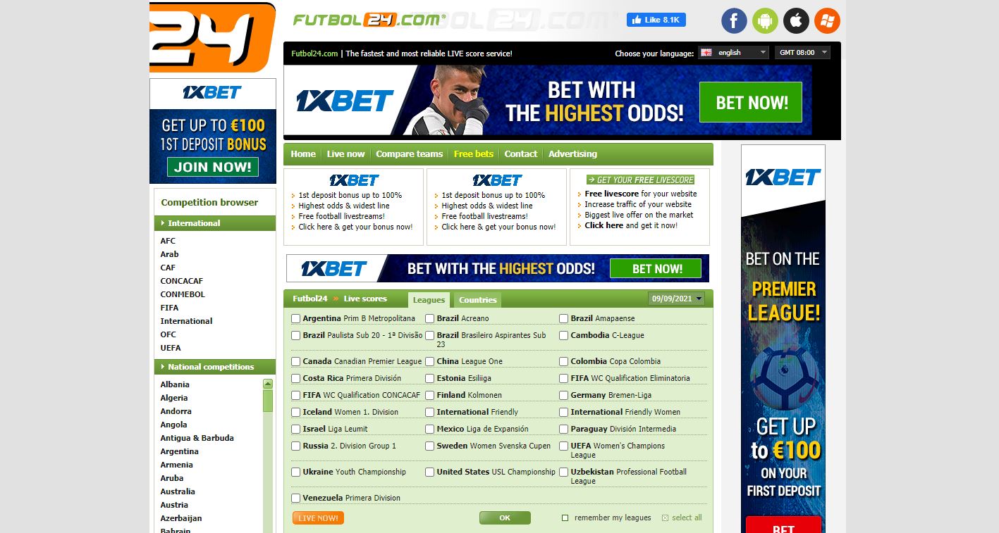 Futbol24 | Scores en direct, statistiques, calendriers | Gratuit (informations) | Ligues mondiales, compétitions majeures et mineures | ✓ (Informations) | Site Officiel |